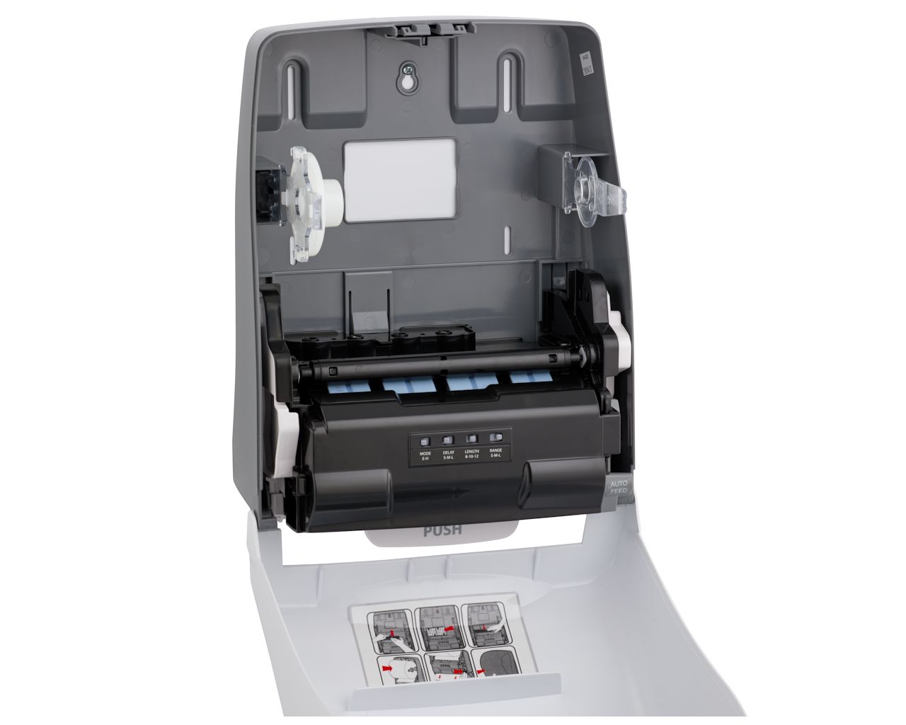 H – w którym urządzenie wysuwa kolejny listek ręcznika po zbliżeniu dłoni do czujnika znajdującego się w dolnej części podajnika