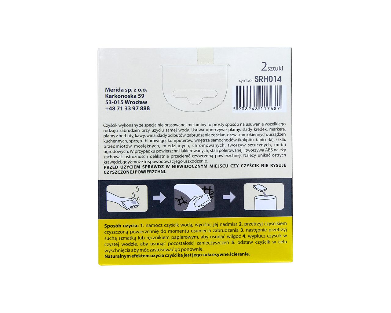 Super mocny czyścik ze specjalnie prasowanej melaminy, do usuwania wszelkiego rodzaju zabrudzeń, przy użyciu samej wody. Znakomicie usuwa różne uporczywe zabrudzenia np. ślady kredek, markerów, plamy z herbaty, plamy z kawy i wina, ślady po butach. Czyścik doskonale nadaje się również do usuwania zabrudzeń ze ścian, drzwi, ram okiennych, urządzeń kuchennych, można go również stosować do czyszczenia wnętrza samochodu (kokpit i tapicerka). W przypadku stosowania na powierzchniach lakierowanych, ze stali polerowanej lub tworzywa ABS należy zachować ostrożność i delikatnie przecierać czyszczoną powierzchnię (istnieje ryzyko zmatowienia powierzchni). Opakowanie handlowe zawiera 2 sztuki czyścika.