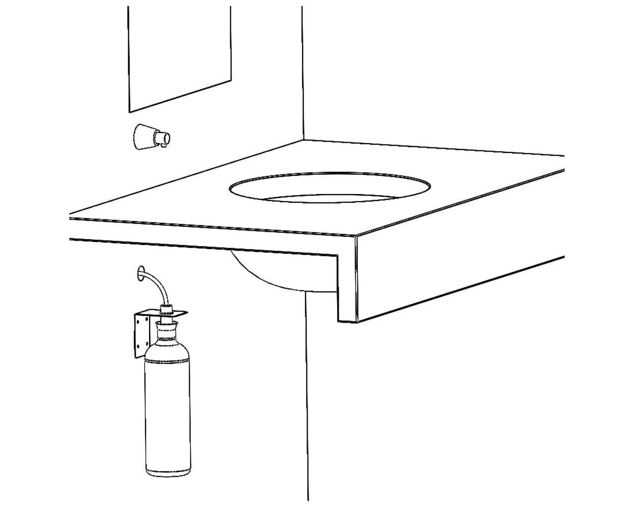 – zbiornik z mydłem umieszcza się w dowolnym miejscu – długość wężyka zasilającego max 190 cm
