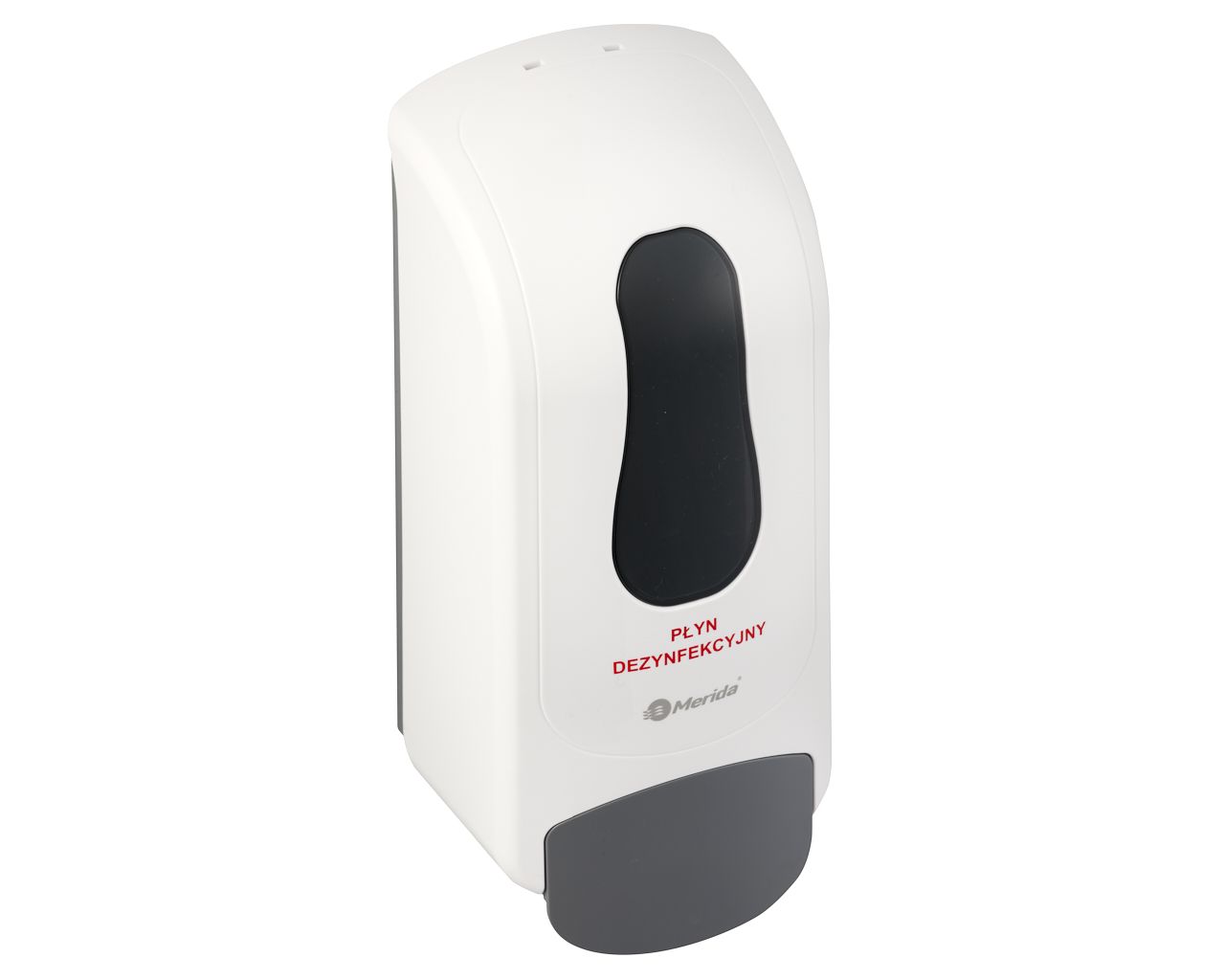 Dozownik płynu dezynfekcyjnego MERIDA ONEna jednorazowe wkłady 700 ml z płynem dezynfekcyjnym MERIDA POLANA DDR+, tworzywo ABSbiały