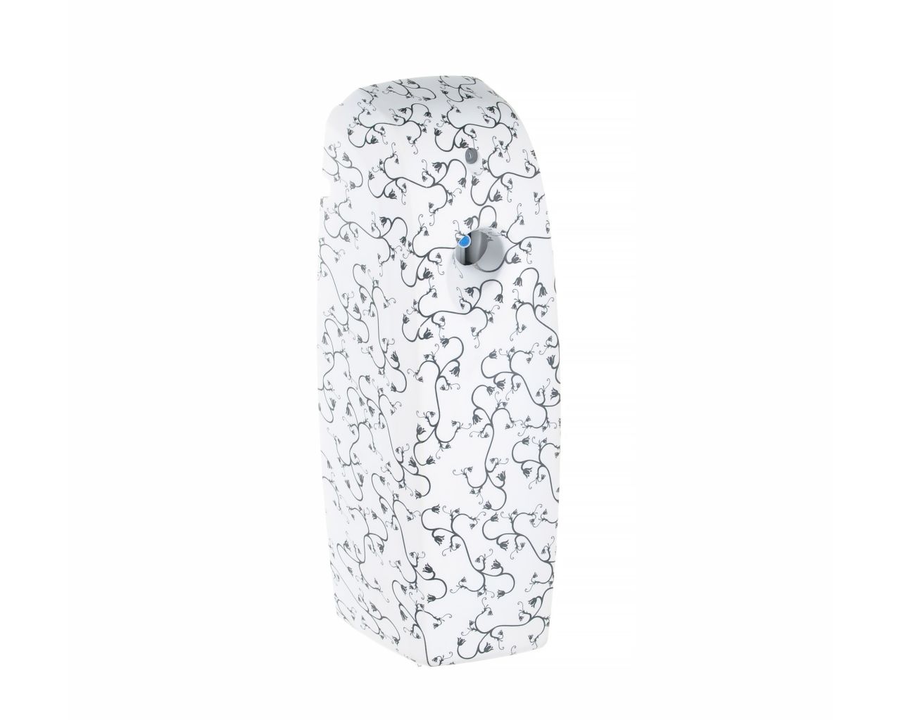 W pełni automatyczny elektroniczny odświeżacz powietrza o eleganckim i smukłym wyglądzie oraz bardzo wysokiej skuteczności (pełny efekt zapachowy w pomieszczeniach o kubaturze do 170 m³). Wyposażony w elektroniczny programator, który pozwala na ustawienie następujących parametrów: aktualna godzina i dzień tygodnia, godzina rozpoczęcia pracy urządzenia, godzina zakończenia pracy urządzenia, czas odstępu między dozowaniem zapachu (od 1 do 60 min.), dni w których urządzenie nie pracuje; po zakończeniu programowania odświeżacza wyświetlana jest informacja, na ile dni pracy wystarczy jeden wkład zapachowy. Zasilany dwiema bateriami R14. Odświeżacz wykonany z wysokiej jakości, bardzo wytrzymałego tworzywa ABS. Można zastosować go w każdym pomieszczeniu. Odporny na działanie UV. Zamykany na kluczyk.