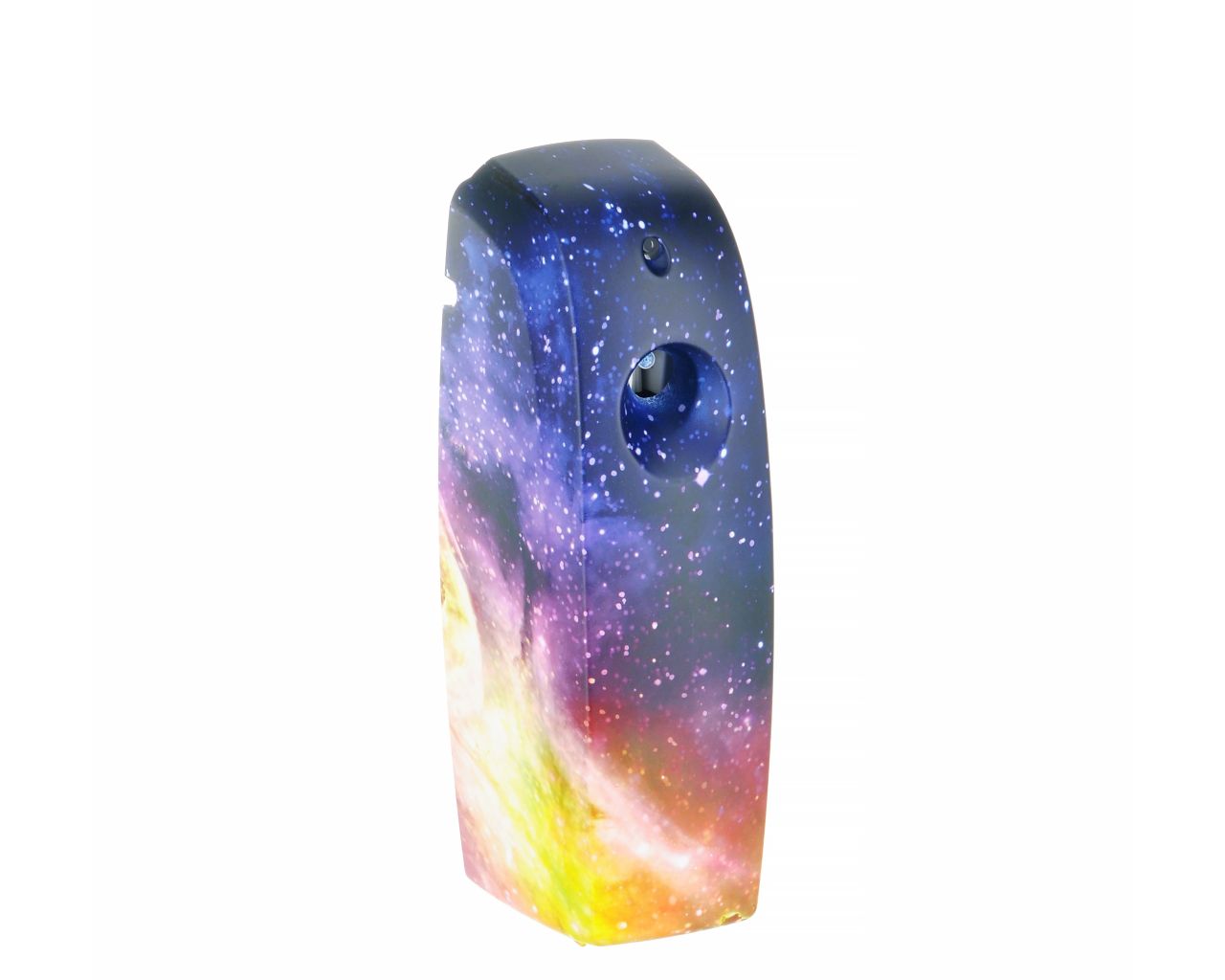 W pełni automatyczny elektroniczny odświeżacz powietrza o eleganckim i smukłym wyglądzie oraz bardzo wysokiej skuteczności (pełny efekt zapachowy w pomieszczeniach o kubaturze do 170 m³). Wyposażony w elektroniczny programator, który pozwala na ustawienie następujących parametrów: aktualna godzina i dzień tygodnia, godzina rozpoczęcia pracy urządzenia, godzina zakończenia pracy urządzenia, czas odstępu między dozowaniem zapachu (od 1 do 60 min.), dni w których urządzenie nie pracuje; po zakończeniu programowania odświeżacza wyświetlana jest informacja, na ile dni pracy wystarczy jeden wkład zapachowy. Zasilany dwiema bateriami R14. Odświeżacz wykonany z wysokiej jakości, bardzo wytrzymałego tworzywa ABS. Można zastosować go w każdym pomieszczeniu. Odporny na działanie UV. Zamykany na kluczyk.