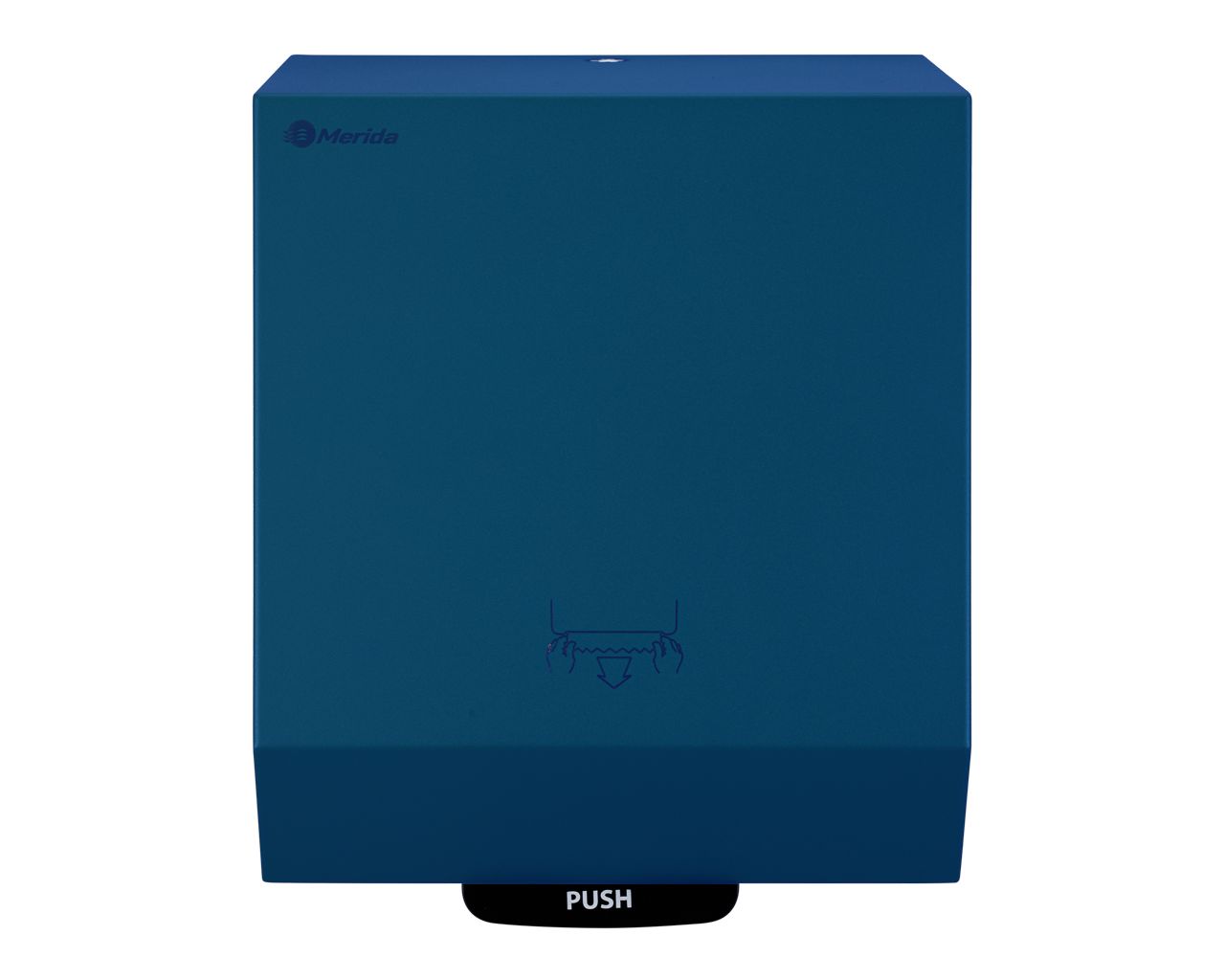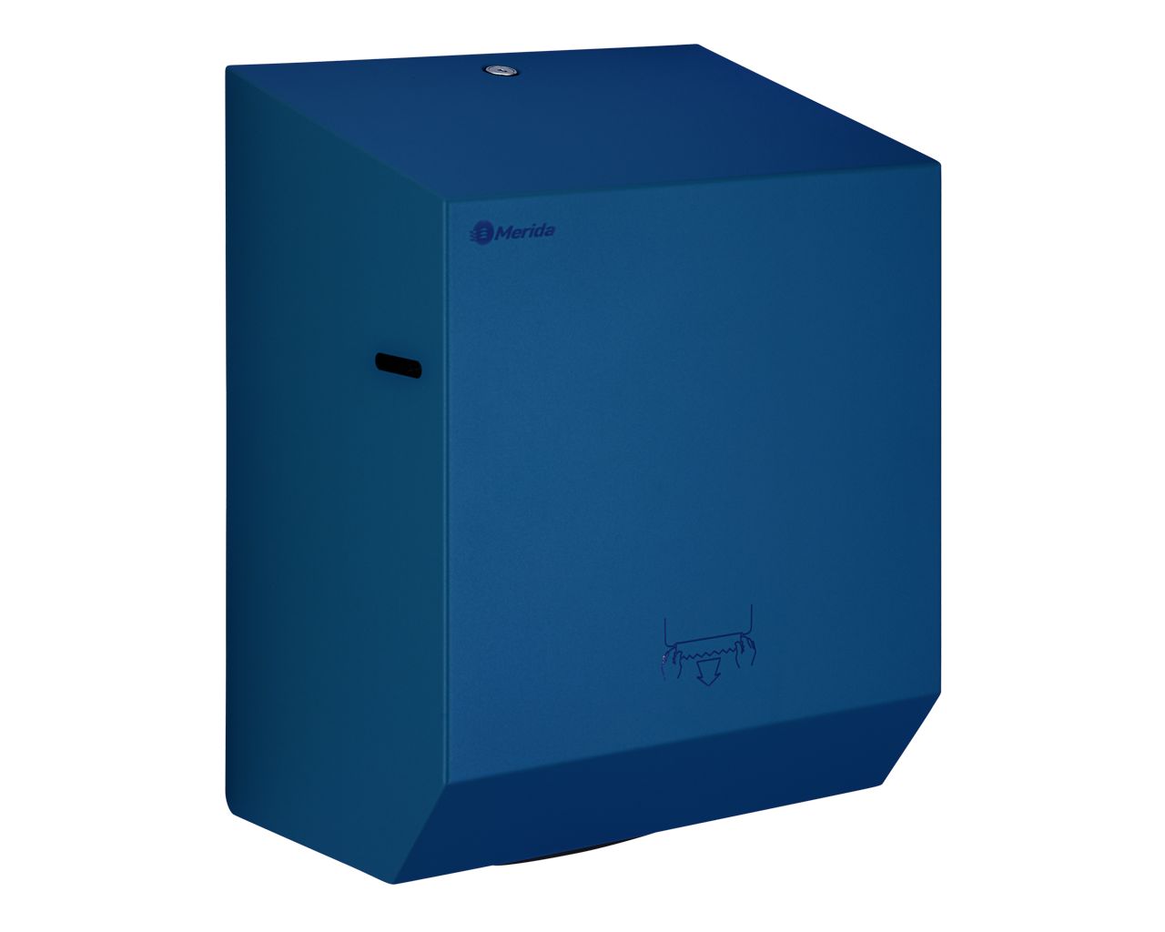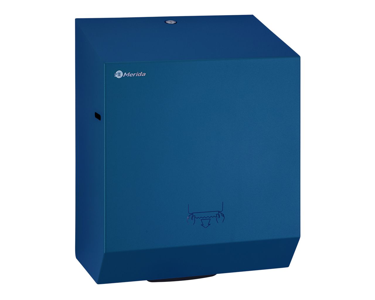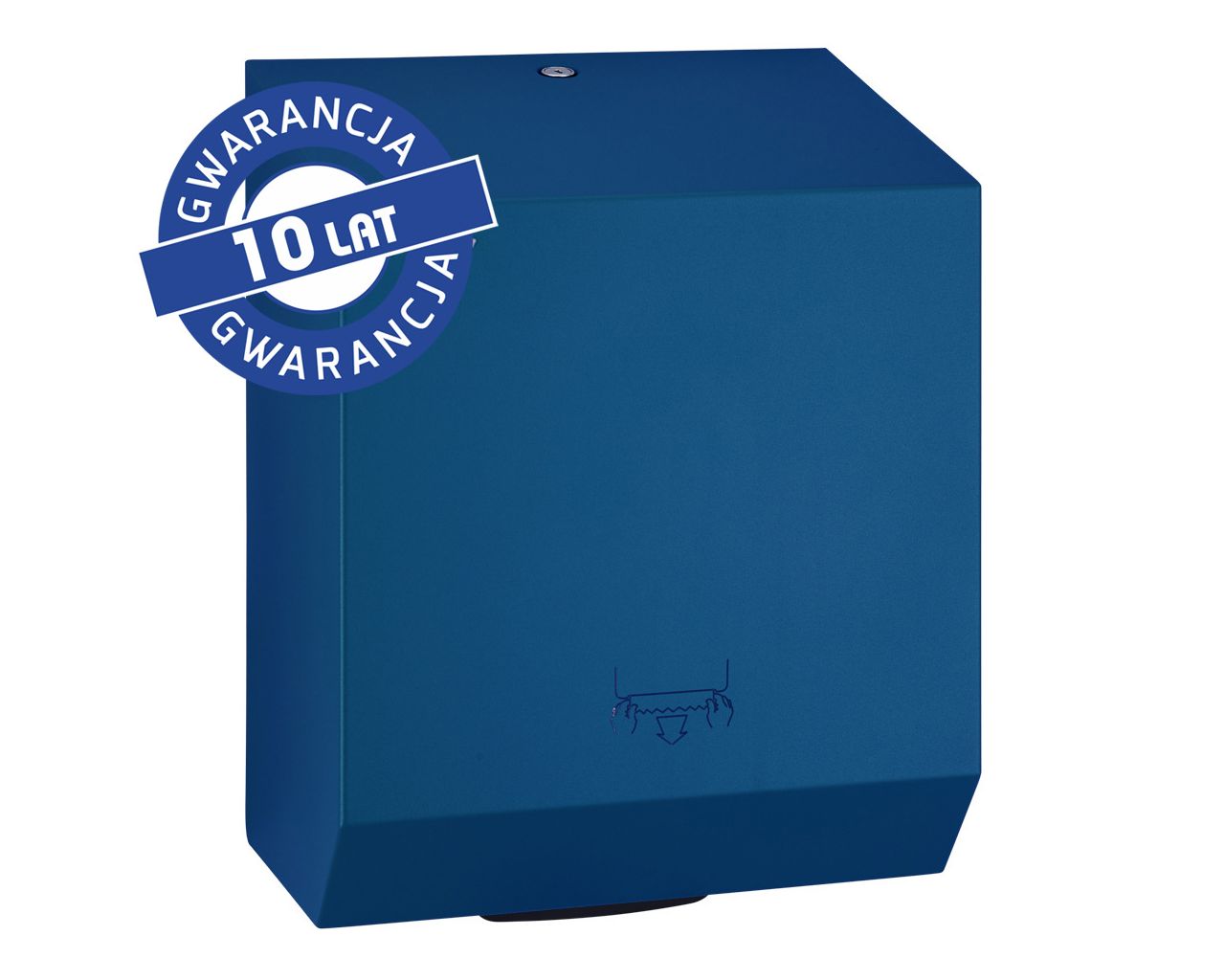 Mechaniczny podajnik ręczników papierowych zapewnia higieniczne użytkowanie, dotykany jest tylko pobierany ręcznik. Pobranie ręcznika uruchamia mechanizm odcinający listek o długości 25,5 cm. Urządzenie charakteryzuje się cichą i delikatną pracą mechanizmu odcinającego. W sytuacji awaryjnej ręcznik można wysunąć przez naciśnięcie dźwigni PUSH, znajdującej się w dolnej części podajnika. Uchwyt rolki wyposażony w system ułatwiający zakładanie ręcznika. Podajnik posiada łatwy dostęp do mechanizmu tnącego umożliwiający bezproblemowe czyszczenie oraz konserwację urządzenia. Wykonany ze stali nierdzewnej. Obudowa pokryta specjalną strukturalną niebieską powłoką. Podajnik ręczników zabezpieczony jest trwałym stalowym zamkiem bębenkowym. Zamek zlicowany z powierzchnią urządzenia. Łączenia boków podajnika ręczników są spawane i szlifowane. Urządzenie posiada niewidoczne zawiasy. Zamykany na kluczyk.