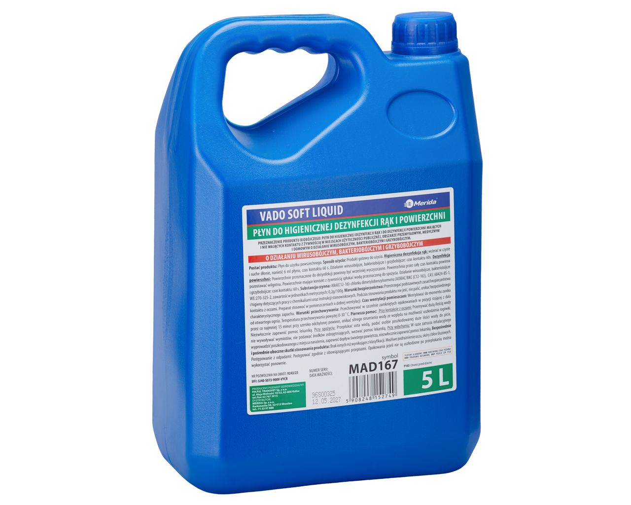 MERIDA VADO SOFT bezalkoholowy płyn do higienicznej dezynfekcji rąk i powierzchnikanister 5 l