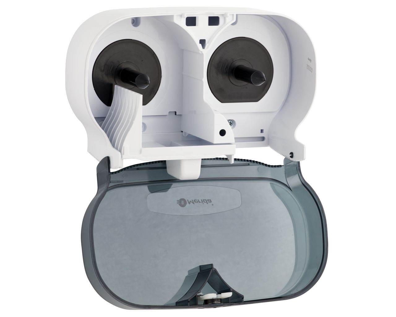 – dzięki specjalnemu mechanizmowi, kolejna rolka papieru dostępna jest dopiero po zużyciu tej obecnie używanej, co eliminuje problem pozostających końcówek rolki