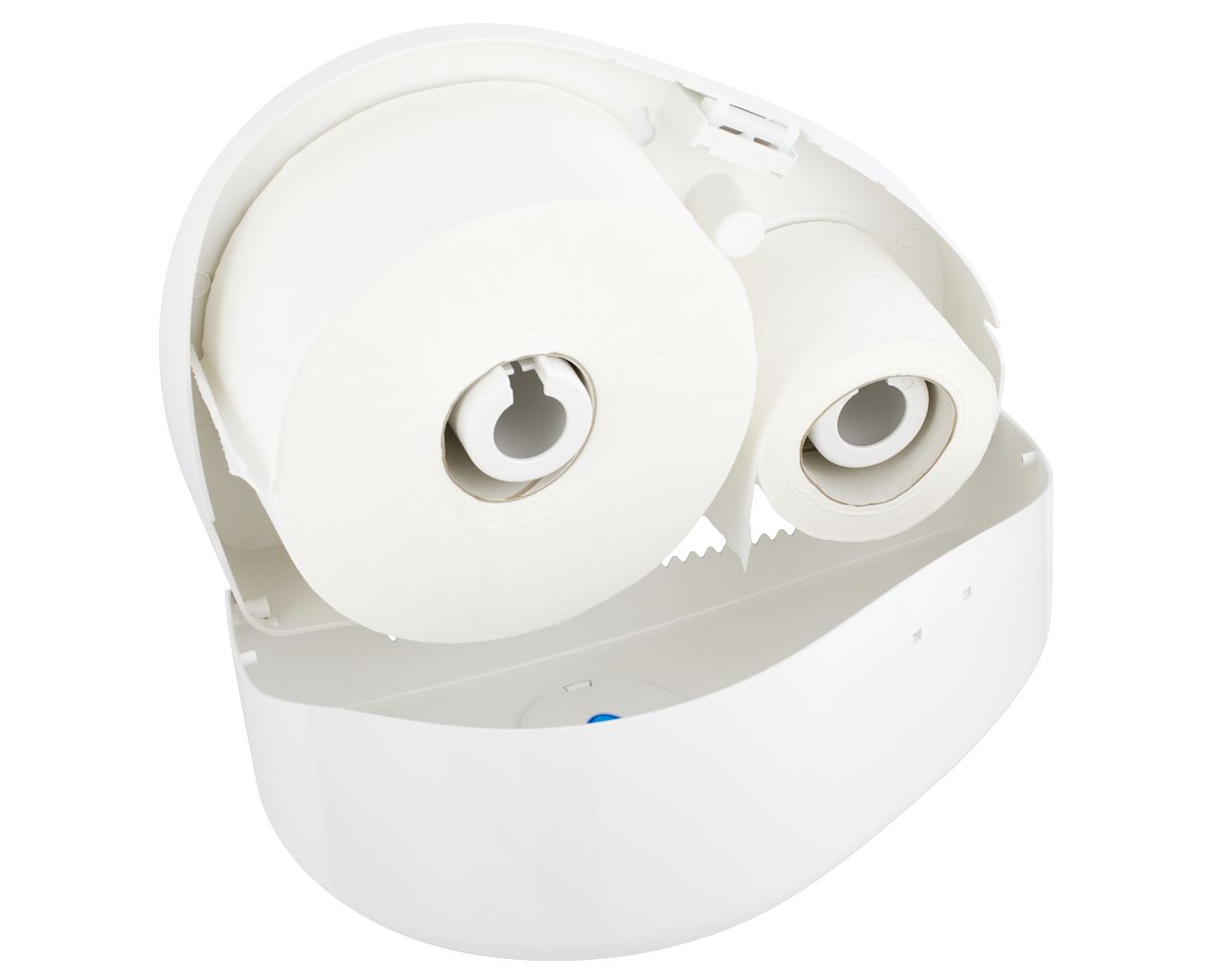 Pojemnik na papier toaletowy MERIDA TOP DUO z uchwytem na resztkę rolkitworzywo ABS, białyokienko szare