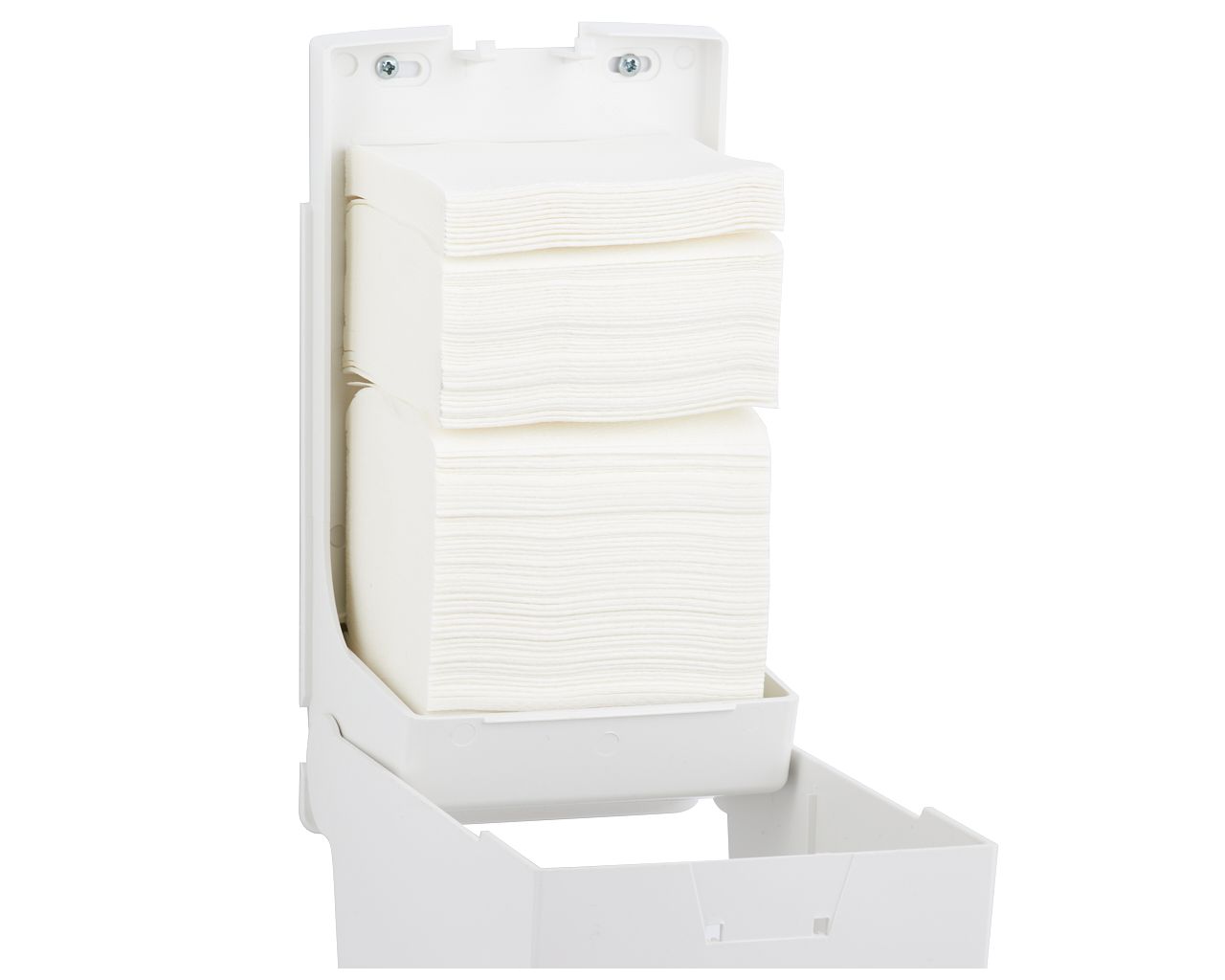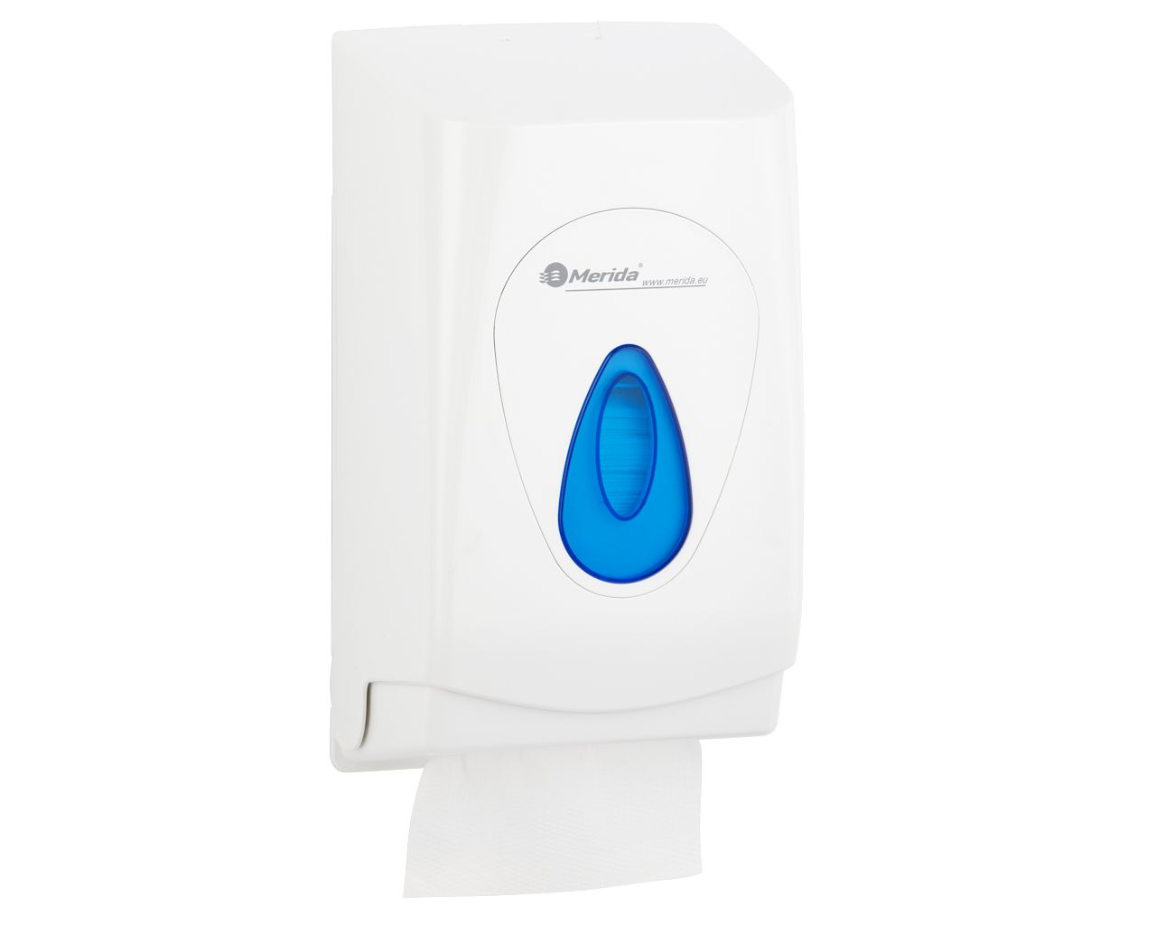 Pojemnik na papier toaletowy w listkach MERIDA TOPpojemność do 450 szt., tworzywo ABS, białyokienko niebieskie