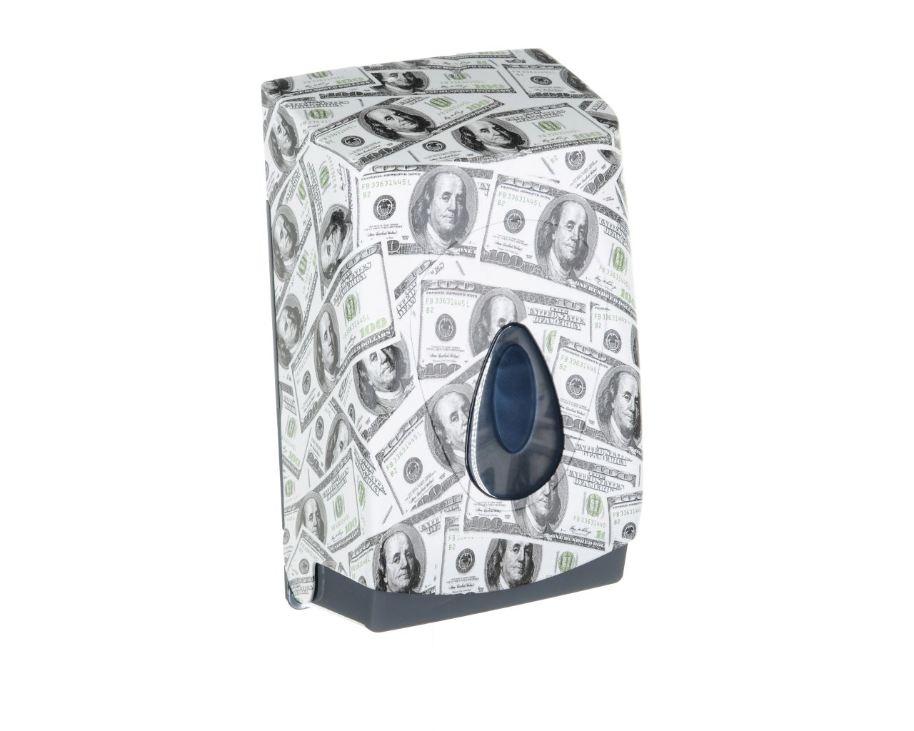 Pojemnik wykonany z wysokiej jakości tworzywa ABS o pojemność do 400 szt. listków papieru. Dostosowany do użytkowania z papierem toaletowym w listkach. Zaopatrzony w ozdobne, ciemnoszare okienko umożliwiające kontrolę ilości papieru w pojemniku. Odporny na działanie UV. Pojemnik zamykany na kluczyk.