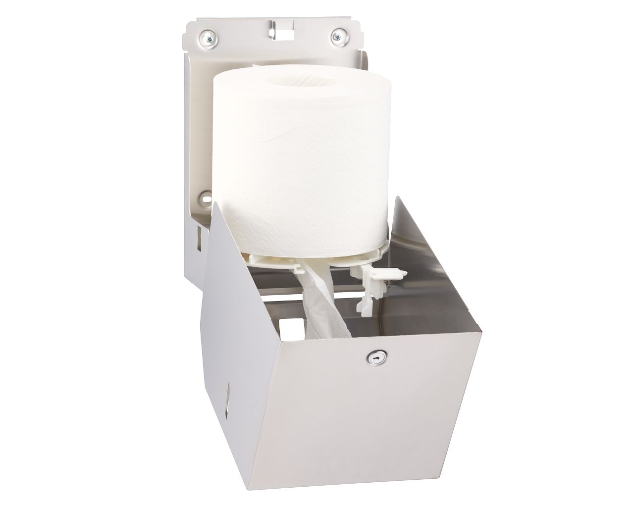 – wkładka dozująca może być wyjęta, co umożliwia pobranie ręcznika o dowolnej długości (w przypadku ręczników z perforacją)