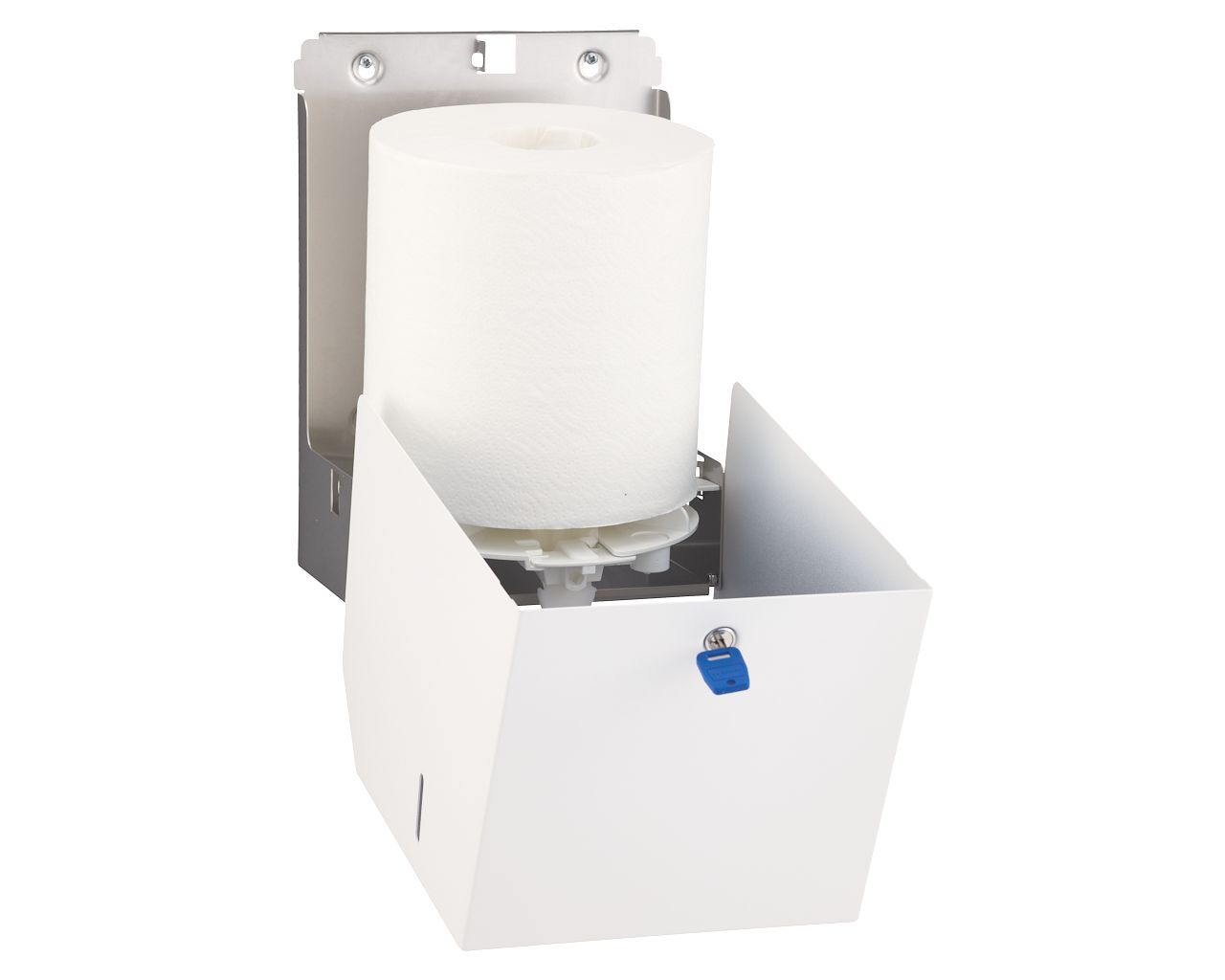 – wkładka dozująca może być wyjęta, co umożliwia pobranie ręcznika o dowolnej długości (w przypadku ręczników z perforacją)