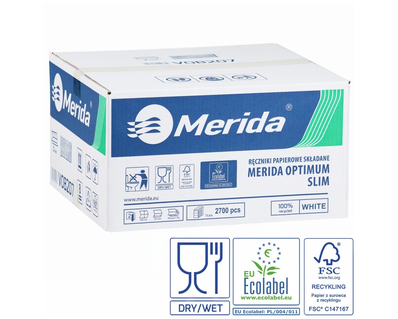 Ręczniki papierowe składane w ZMERIDA OPTIMUM SLIM ECOLABEL, dwuwarstwowe, białekarton 2700 szt.