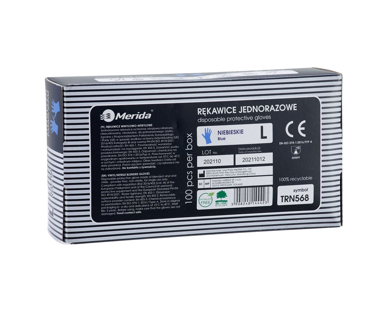 Rękawice winylowo – nitryloweniebieskie, rozmiar Lopakowanie 100 szt.