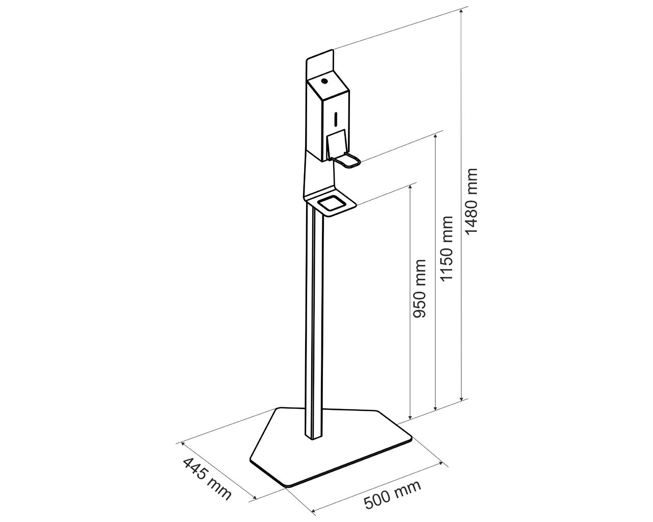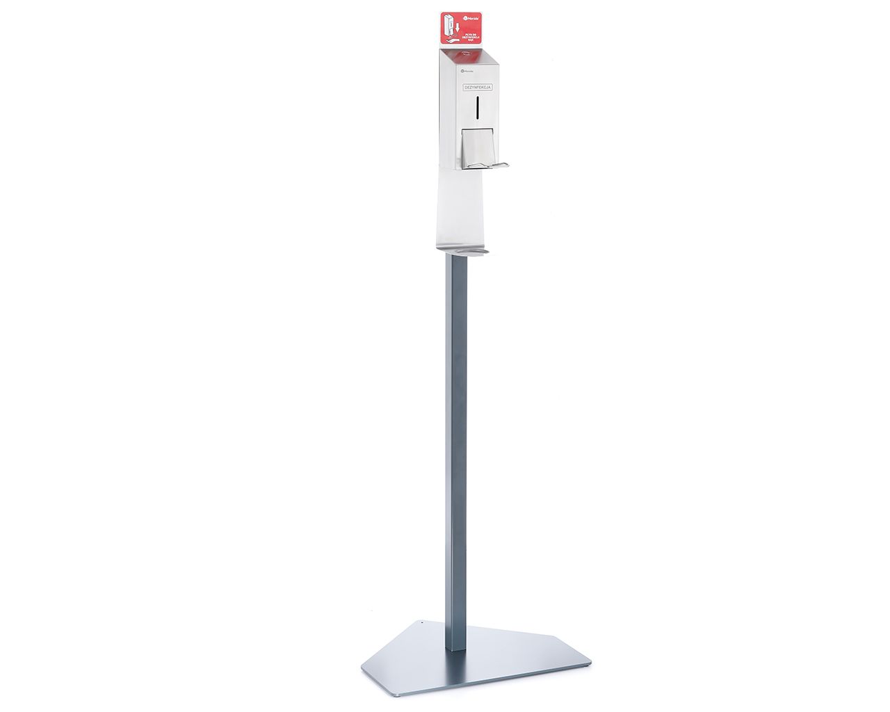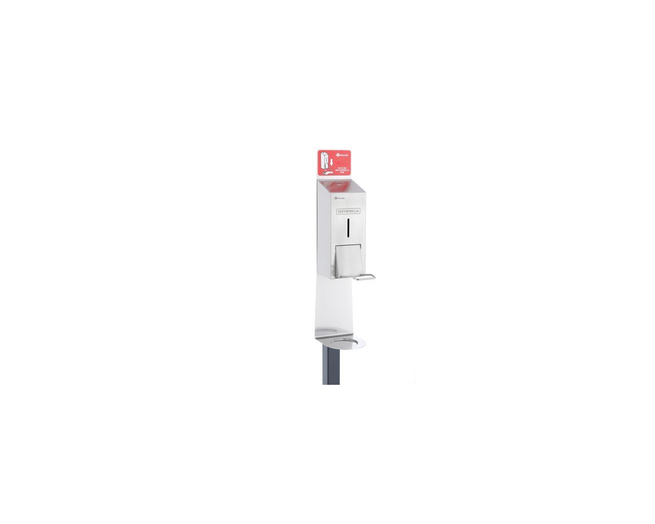 Stojak do dezynfekcji rąk z dozownikiem ze zbiornikiem 800 mlz przyciskiem łokciowym MERIDA STELLA