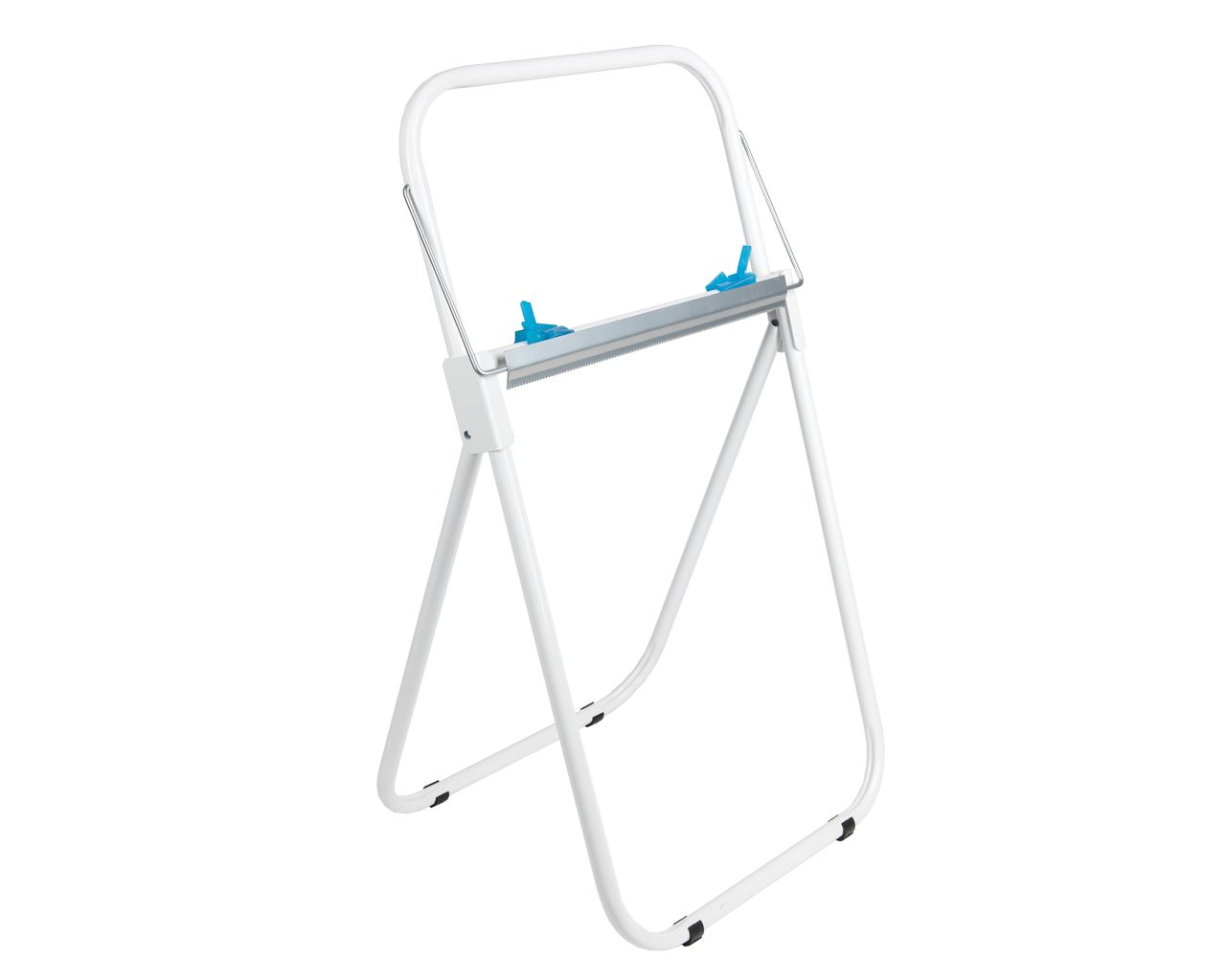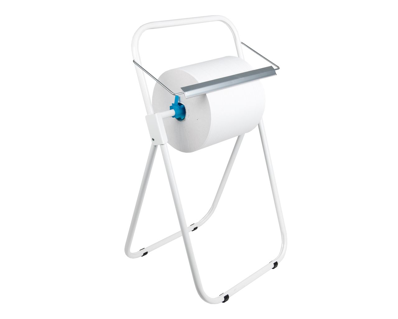 Stojak na przemysłowe czyściwa w rolachmetalowybiały