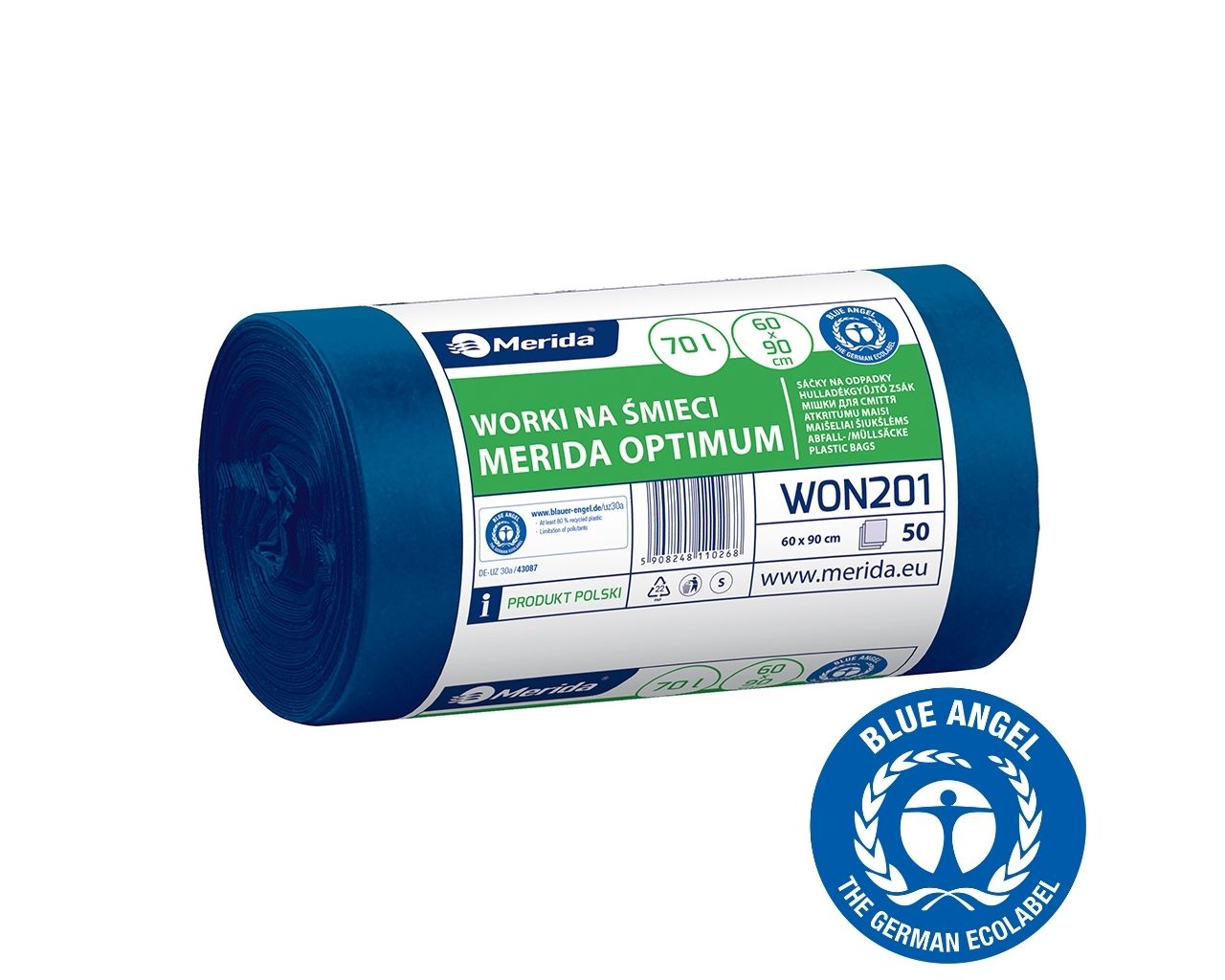 Worki na śmieci 70 lMERIDA OPTIMUM BLUE ANGEL, niebieskie, 60×90 cmrolka 50 szt.
