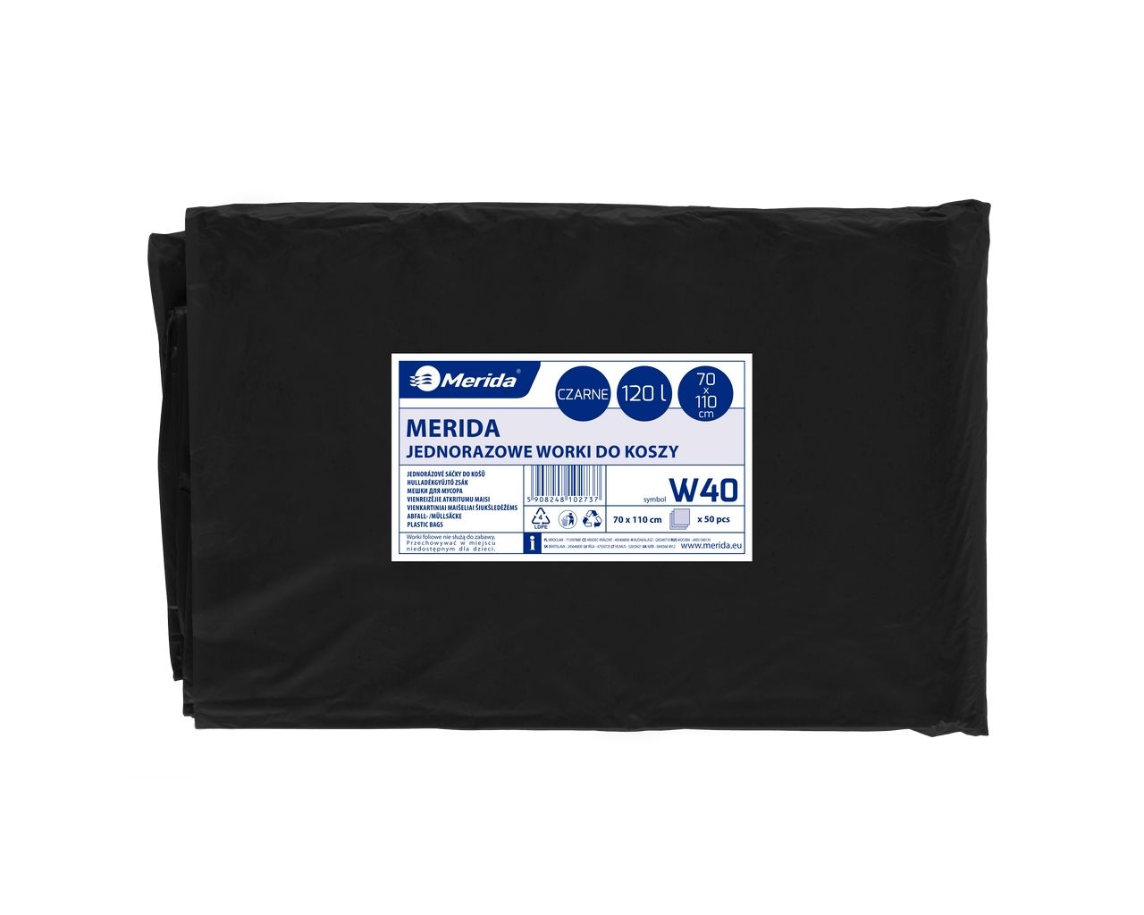 Worki na śmieci 120 lMERIDA CLASSIC, czarne, 70×110 cmpaczka 50 szt.